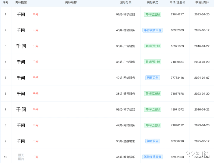 知协查询了解到,阿里最早于2016年开始为千问申请商标注册,已成功注册多枚“千问”商标,覆盖第9类科学仪器、第35类广告销售、第38类通讯服务、第42类设计研究等多个国际分类。同时,阿里还注册了英文商标“Tongyi Qwen”,进一步强化品牌保护。