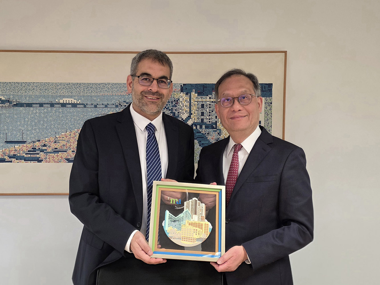 都大与萨西克斯大学(University of Sussex)合作,为修读都大环球商业的学生提供双学位途径。都大校长林群声教授向萨西克斯大学副校长(全球与公民参与)Robin Banerjee教授致送纪念品。