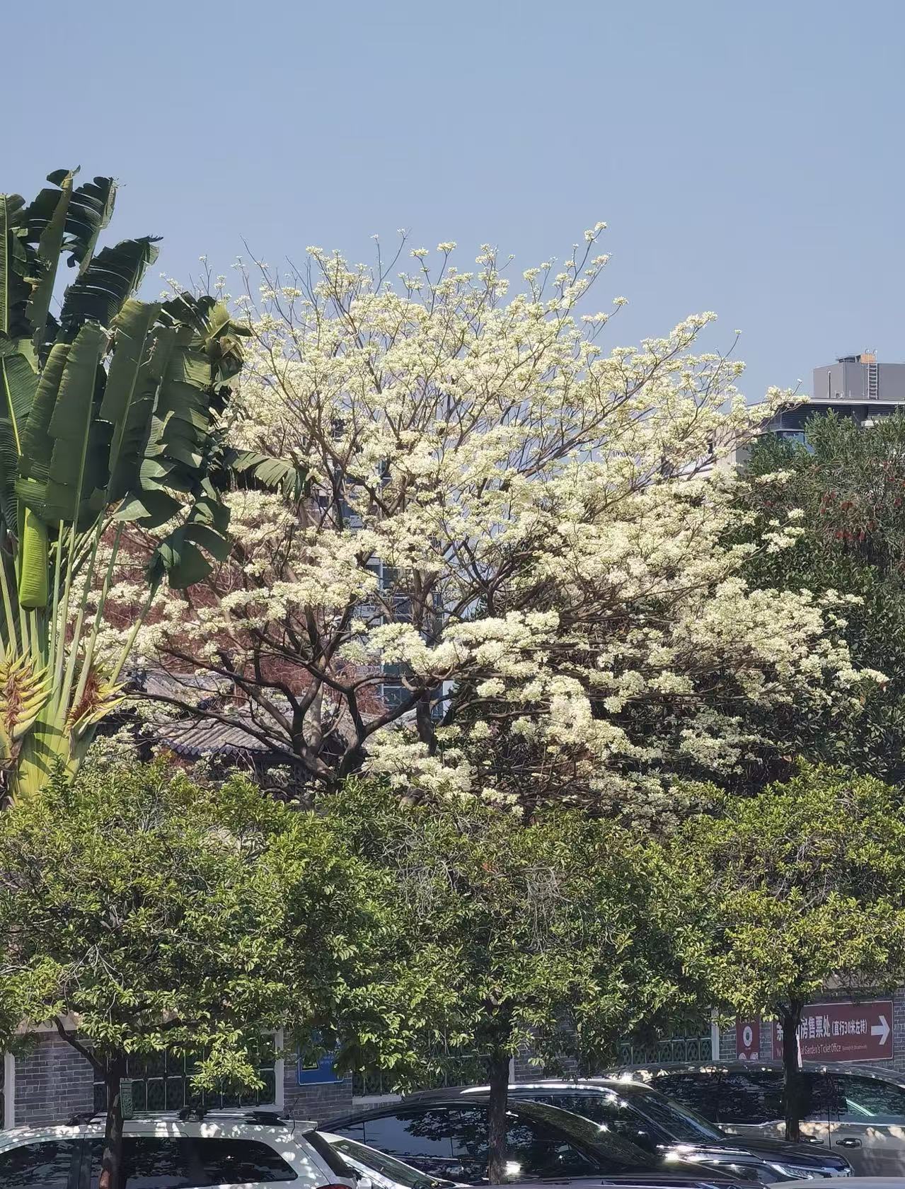据悉,白花风铃木的花期十分短暂,仅持续十几天。为方便市民游客更好地邂逅这份限定美景,园区工作人员特别推荐了几大最佳观赏点位:后花园是借景拍摄的绝佳选择,白花风铃木与假山流水、曲径回廊相映,尽显园林雅致;广场则适合观赏风铃木全貌,近景、中景、远景拍摄皆适宜;停车场围墙边可单独拍摄花枝,轻松捕捉花团的细腻美感。