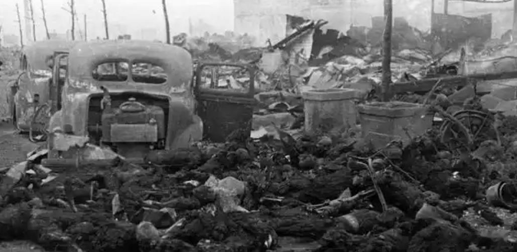 的确,裕仁可以靠着忽悠人,达成自己的目的,但他欺骗不了所有人,也改变不了日本走下坡路的事实。1945年,东京被燃烧弹轰炸,烧死了10万人,烧伤了10万人,这还只是一夜的威力,后来的大阪、神户也遭到轮番轰炸,全部变成了废墟,一度让美国找不到完整的轰炸目标,而轰炸带来最大的困境,是饥饿。
