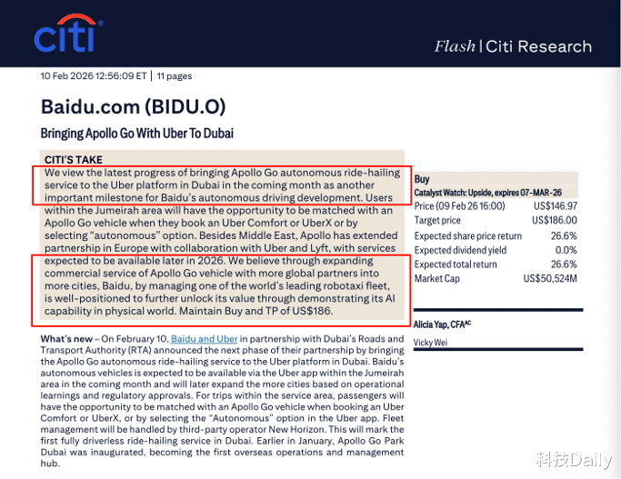 最近百度旗下无人驾驶平台萝卜快跑宣布即将于迪拜开展全无人商业化运营后,花旗银行重申对百度的"买入"评级,伴随着全球化,除了在迪拜能体验到无人车之外,相信越来越多的城市也将会支持。