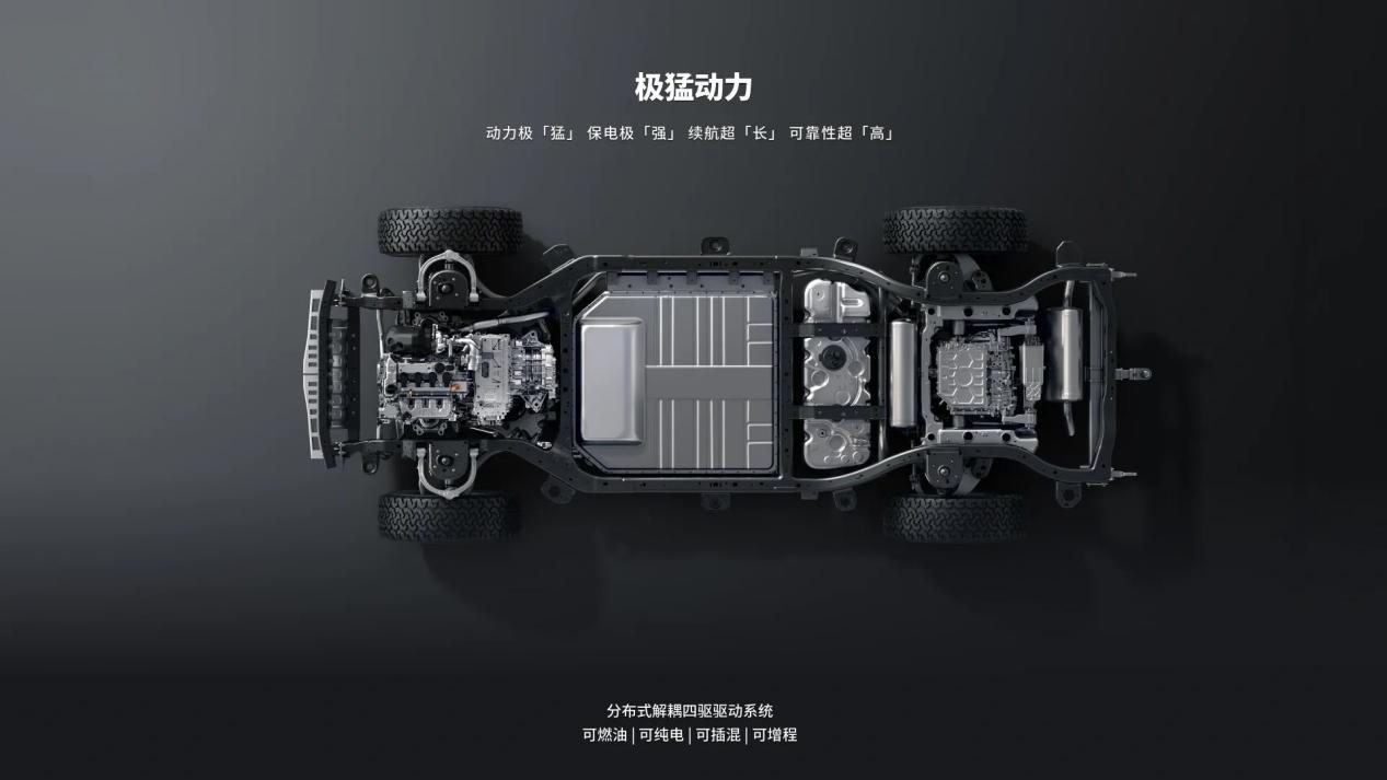 猛士M817开发了高效的越野专用纵置发动机,采用了超高压燃油喷射、纵置VVT、深度米勒循环,将热效率做到了顶级水平45.18%;混动箱采用更宽的两挡直驱;后电驱采用了行业首个智能断开技术,以及车身采用了众多的轻量化技术,加上宁德时代越野专用电池电池系统,使得系统能综合实现1300公里综合续航(CLTC)——这意味着从北京到上海无需补能,满油满电能轻松穿越羌塘千里无人区。