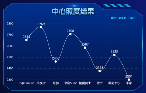 这三款产品在中心照度方面表现卓越,实测数据均超过2700lux。
