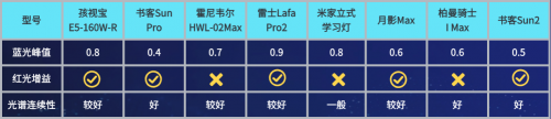 (3)达标水平:孩视宝E5-160W-R、雷士Lafa Pro2、米家立式学习灯