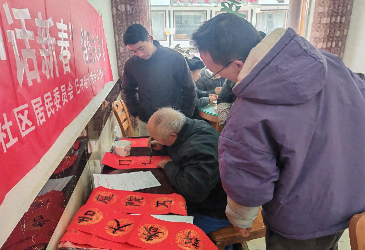 活动现场墨香四溢、暖意融融。社区书法爱好者早早摆开桌案,挥毫泼墨。“家和万事兴”“景社同心促发展”……一副副红彤彤的春联既有传统年味,更寄寓着居民对社区与景区协同发展的殷切期待。居民们或围站观摩,或提笔体验,在纸墨交融间感受传统文化的魅力,为新春增添了一道独特的“文化开胃菜”。