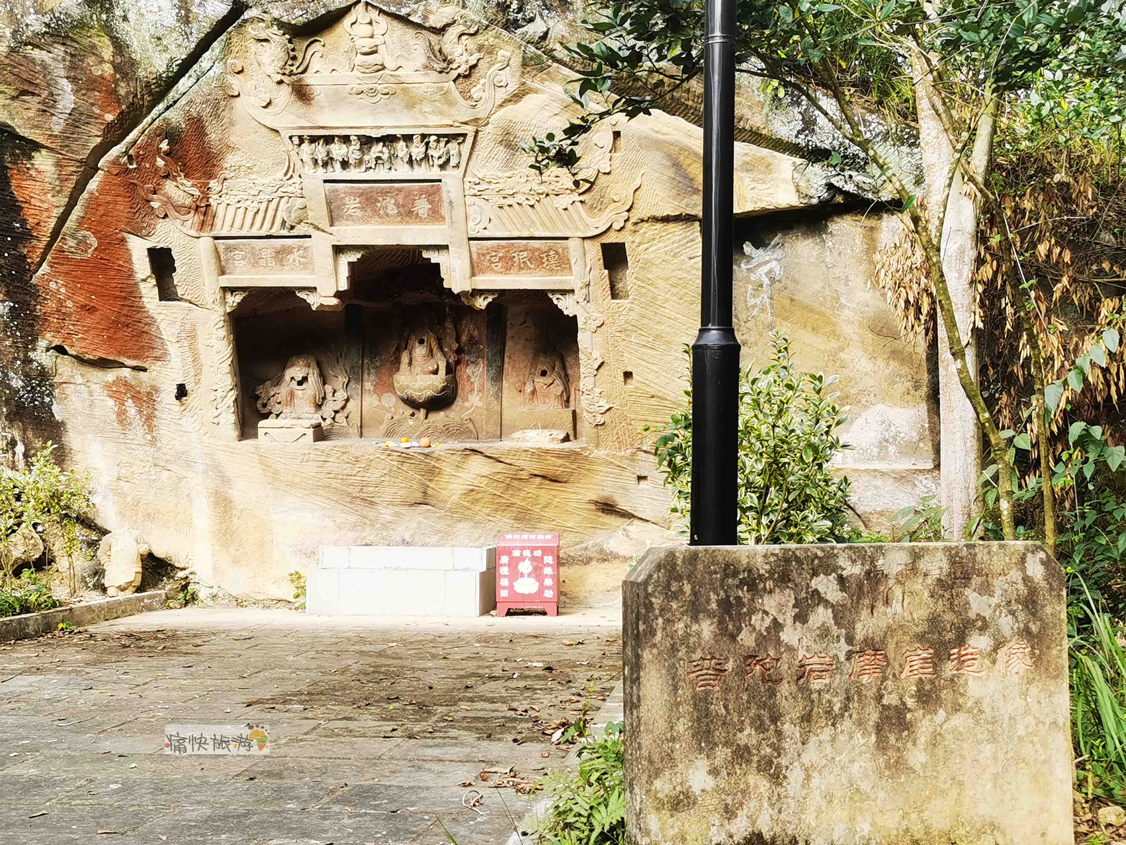 摩崖造像所在的岩石后半部分属内江市威远县管辖,真的是一石踏两县、两地供奉一座庙。