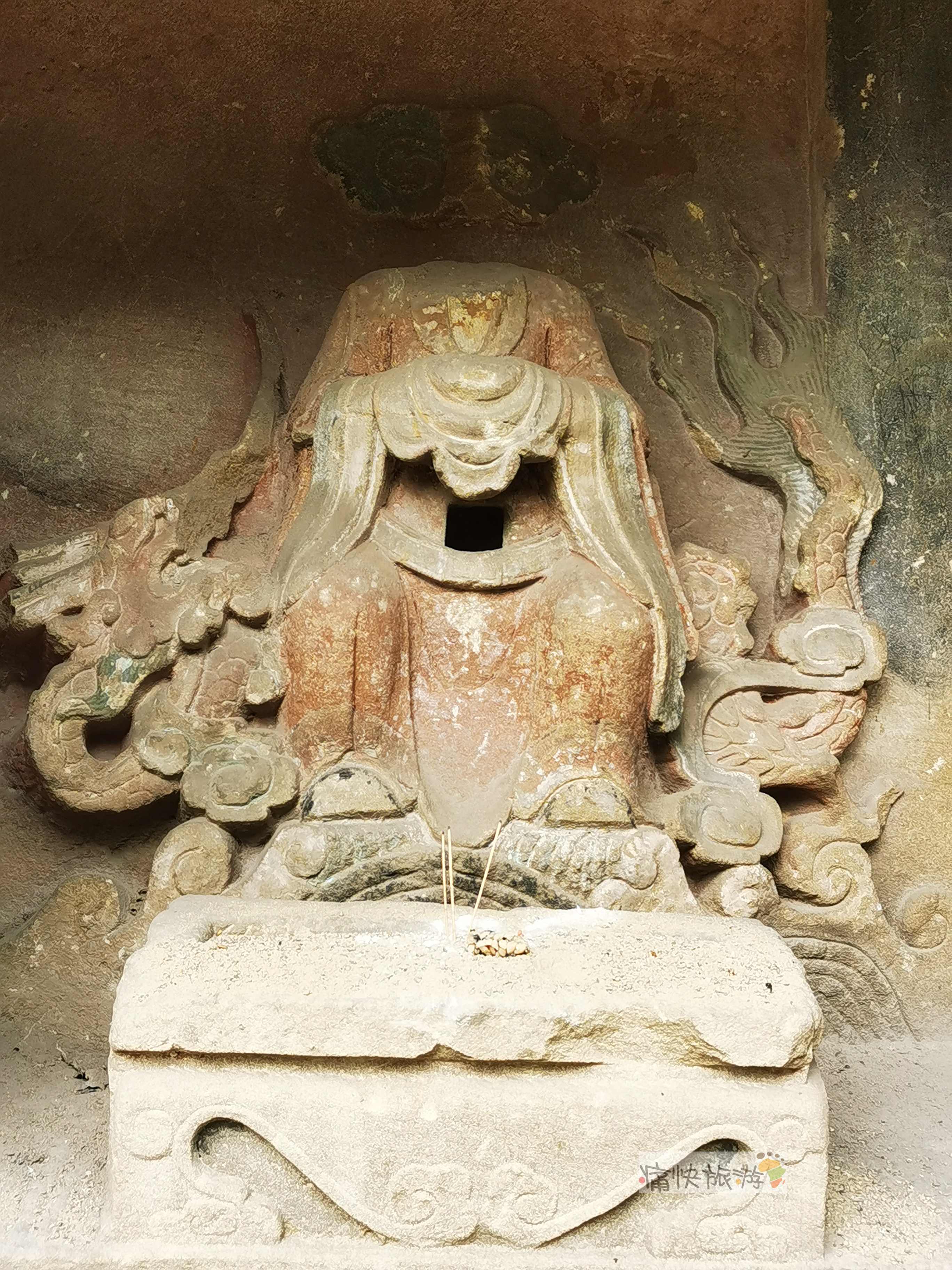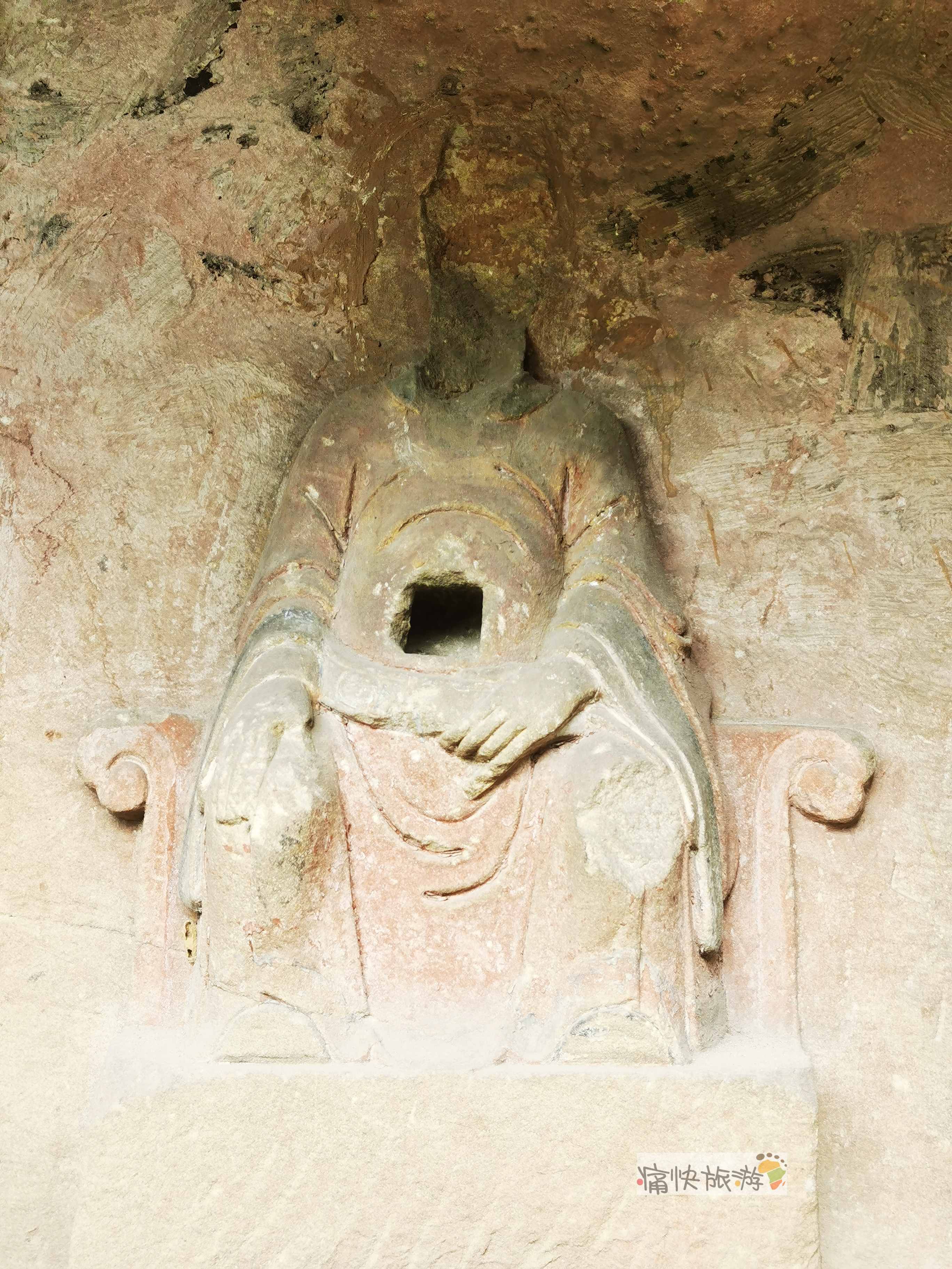 摩崖造像下方还有一尊无头造像,不知是不是原来庙宇的遗存。