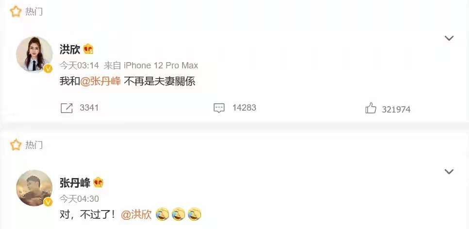 在社交账号提到了两人离婚的事情,虽然说后来有给出澄清,但观众却觉得洪欣作为一个公众人物不会无缘无故发这样的一些动态。