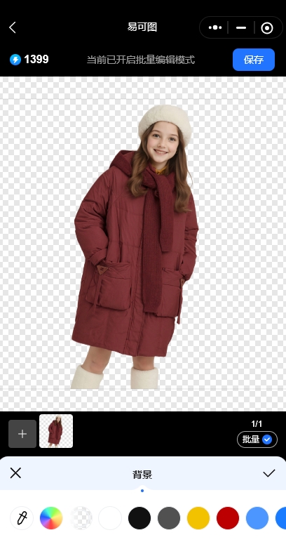 易可图的智能抠图功能,可以自动抠除图片背景,完整保留图片中的主体,适合商品图、人物图等多种场景。