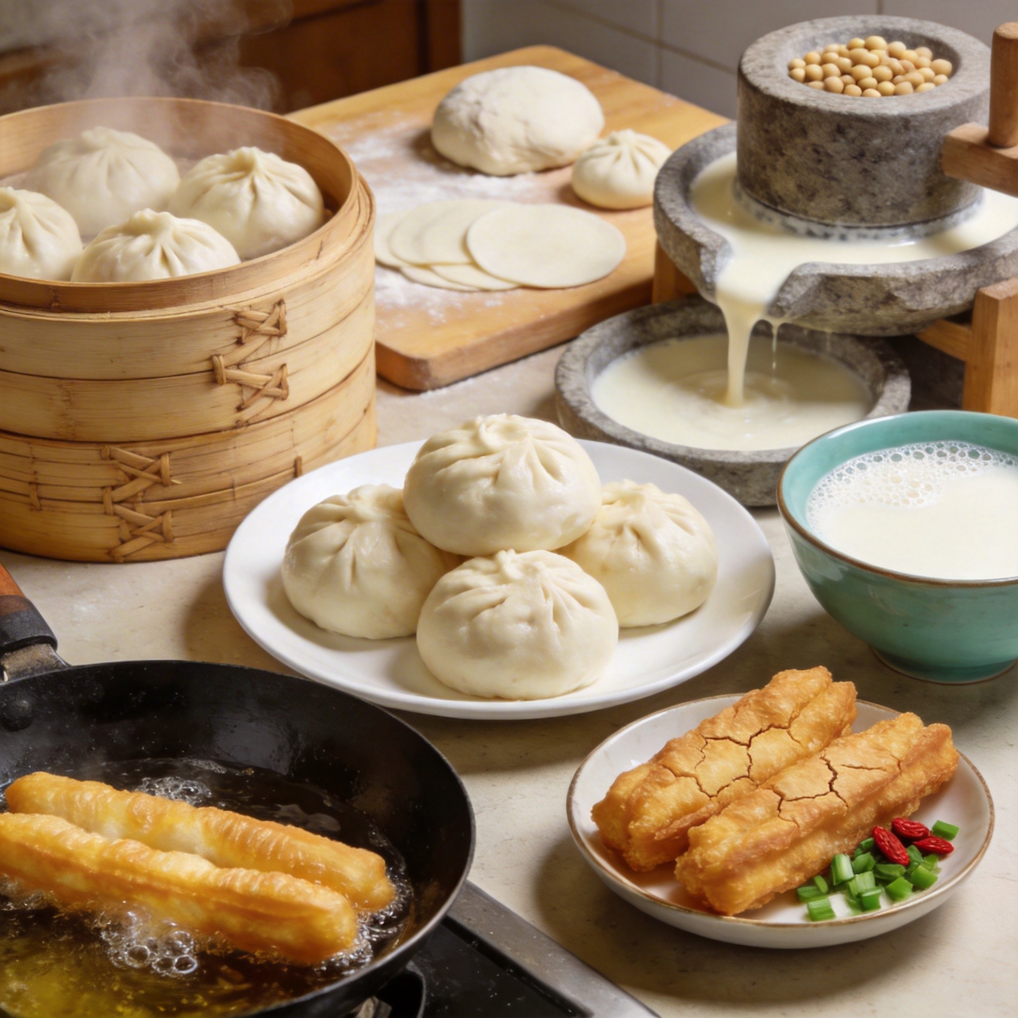 中式早餐是中国传统的早餐方式,它以其丰富的口味和营养受到了人们的喜爱。我们可以采用一些传统的制作方法,制作出美味的中式早餐。例如,制作包子时,可以选择面粉、猪肉、白菜等食材,将面粉揉成面团,发酵后擀成面皮,加入猪肉、白菜等馅料,包成包子,放入蒸笼中蒸熟,即可制作出美味的包子;制作豆浆时,可以选择黄豆、黑豆等食材,将食材浸泡后放入豆浆机中,加入适量的水,按下开关,即可制作出美味的豆浆。此外,还可以搭配一些小菜,如咸菜、豆腐乳等,以增加早餐的口感。