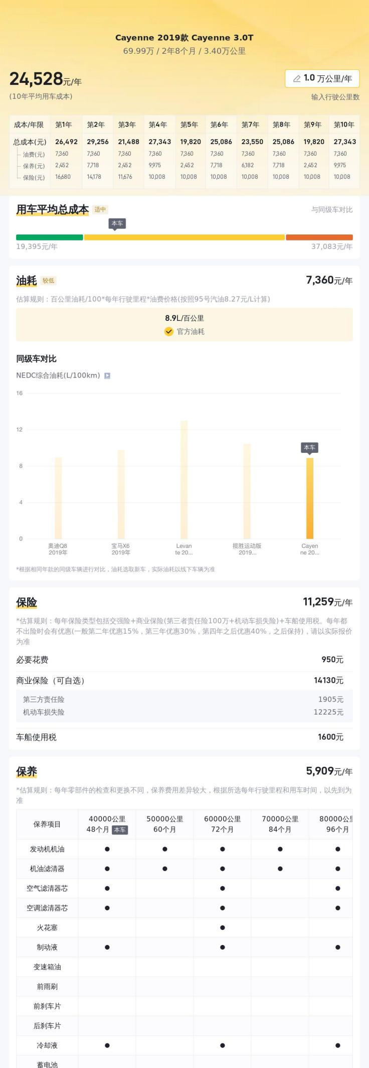 用车成本方面,预估这辆Cayenne的年均综合用车成本在2.5万元左右。这包括了燃油费、保险费、保养费等各项开支。对于一辆豪华SUV来说,这个成本并不算高,但也需要我们提前做好心理准备。