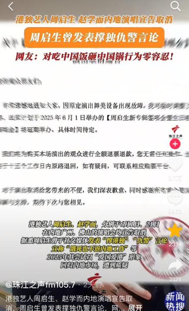 两位港独艺人妄图内地捞金,遭遇滑铁卢!演唱会取消,全面遭抵制