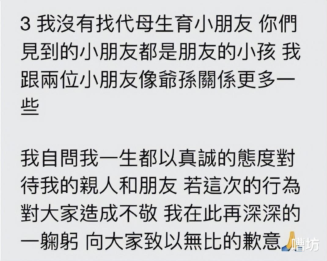 他表示,网络上流传的两个孩子,其实是朋友家的小孩,并非是他找别人代Y生下来的。