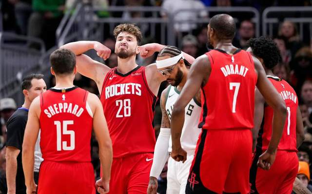 谢泼德本场的进攻手感一般,首节两次出手不中,但送出3次助攻,盘活了全队的进攻,在一号位的位置上,相比于他的得分,传球才是最需要的,火箭队除了申京之外,缺少第二个组织点。少了多名球员之后,小霍勒迪挑起大梁,戴维森也获得了机会,外线三人轮换由三个一号位组成,乌度卡被迫变阵,反倒是收到了奇效。小霍勒迪三分连中,帮助球队领先。