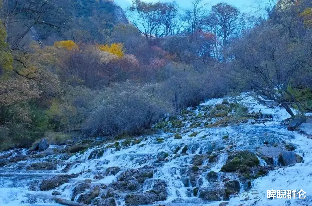 特色与看点:一道流在钙华滩涂上的灵动瀑布。水流被地震形成的石滩分割成无数股,如珍珠洒落,故名“珍珠瀑”。冬季,瀑布周边会形成晶莹的冰挂,动静结合,别有韵味。
