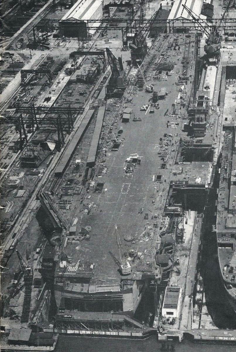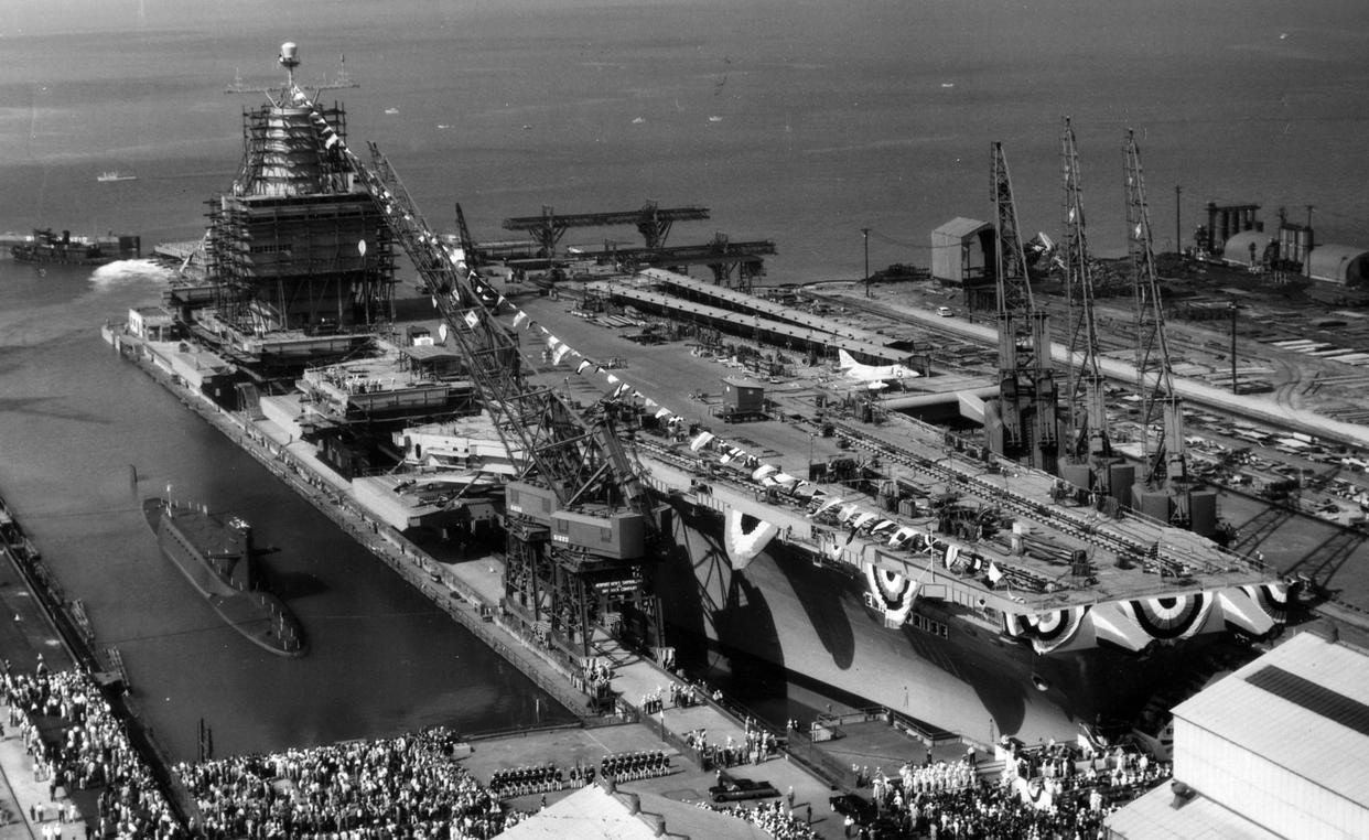 1958年2月4日铺设龙骨的企业号航母在1959年5月26日的进度。