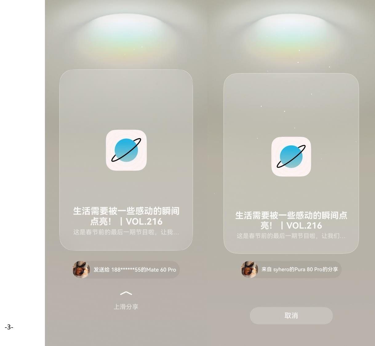 挖到心仪的播客,想第一时间分享给家人朋友?不用复制链接、不用扫码、不用等加载,两台鸿蒙手机轻轻一碰,心仪播客节目即刻“直达”对方设备;或者隔空一抓一放,内容瞬间传送,像变魔术一样自然。这个春节,让好声音在亲友间“碰”出共鸣。