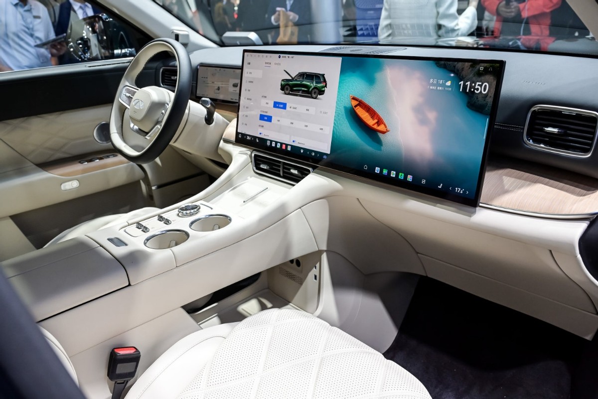 对于有娃家庭来说,"哄娃神器"的重要性不亚于安全配置。风云T11的后排娱乐系统堪称车展惊喜:17.3英寸2.5K高清吸顶屏缓缓降下时,现场不少孩子发出了欢呼。这块屏幕支持与前排30英寸6K寰宇屏的跨屏流转,家长在前排设置好动画片,后排即刻同步播放,配合256色音乐律动氛围灯,瞬间变身移动影院。