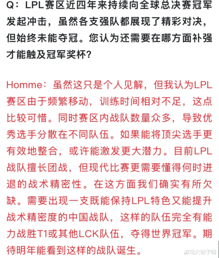 或许,红米的方案并非一蹴而就,但他指出的方向,正是LPL走向成熟必须面对的现实,S16的号角即将吹响,也许,是时候让这个赛区重新定义“强”的含义了,对此你们有什么想说的吗?