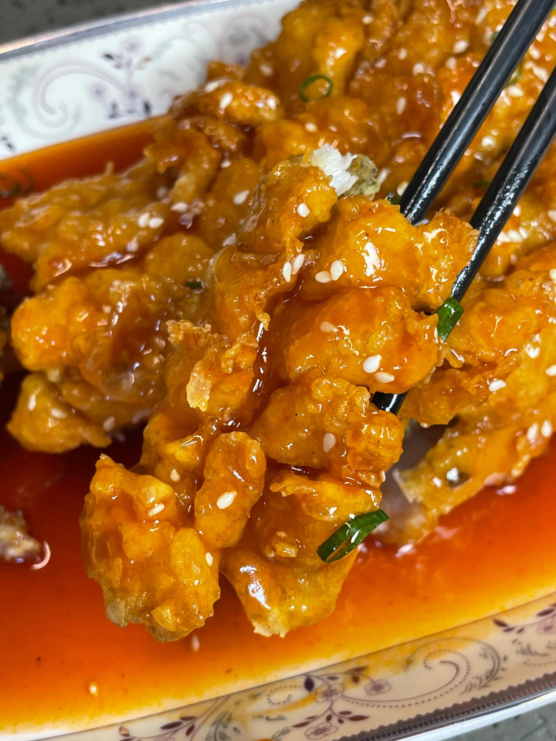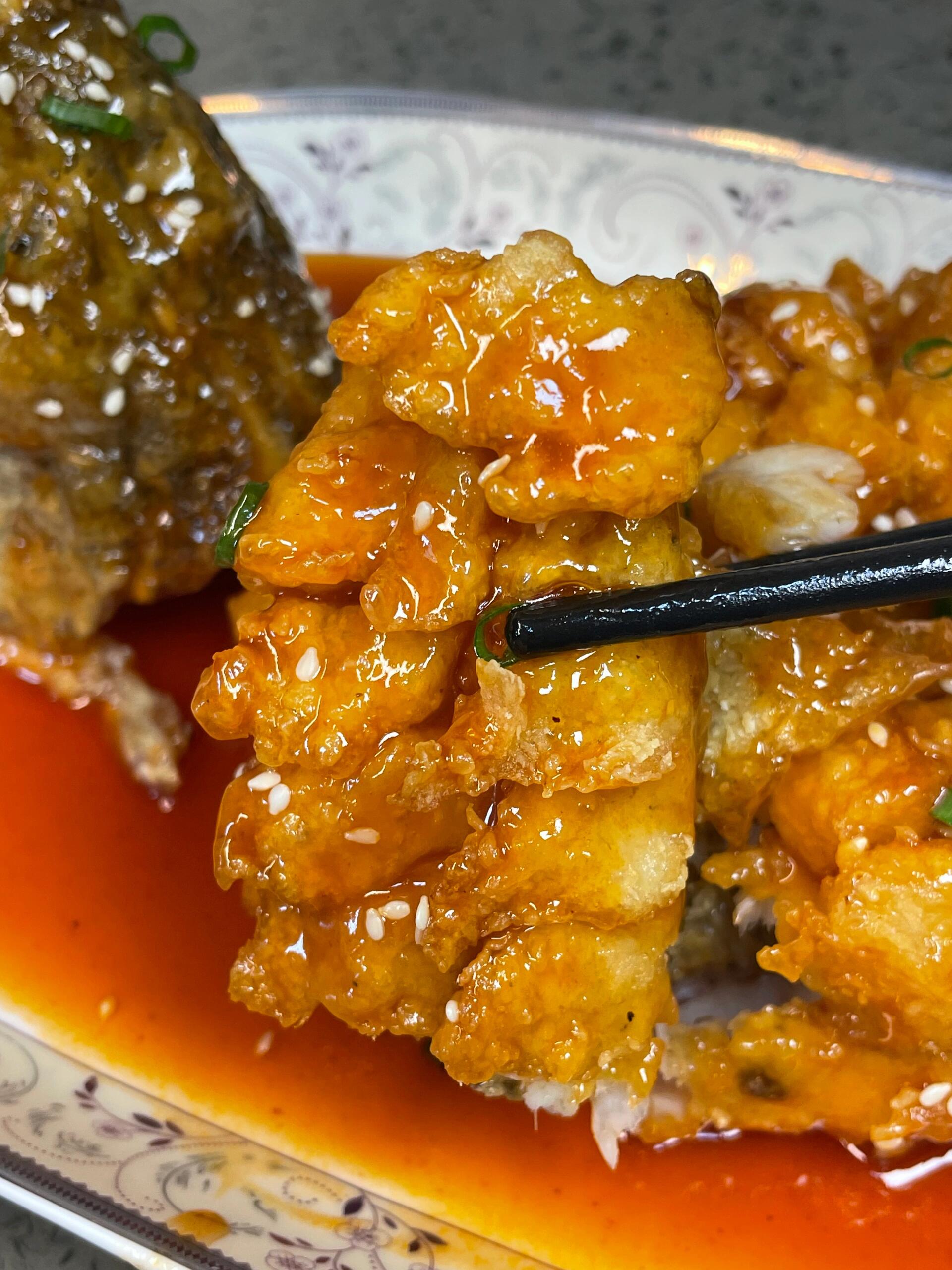 趁热!一定要趁热!把红亮亮的糖醋汁"滋啦"一声浇在炸好的鱼身上——这时候会发出"吱吱"的响声,像松鼠在叫,这也是这道菜名字的由来!撒上一点白芝麻,完美!