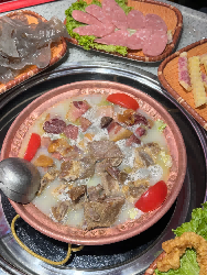 云南丽江特色风味,腊排骨经过长时间腌制,肉质紧实、咸香入味,搭配萝卜、土豆等配菜慢炖,汤头浓郁鲜香,排骨越嚼越香,吸饱汤汁的配菜软糯可口,一口尝到纳西族的饮食特色,暖身又治愈。