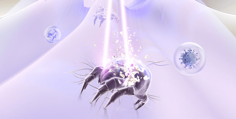 除螨仪有用吗?希亦独家推出了六大硬核黑科技全链路强除螨,通过Deep-C超声波除螨技术,打破细菌与螨虫保护膜,直达纤维根部,做到深层100%强除螨!配合5颗UV-C深紫外灯珠杀菌,彻底破坏螨虫和细菌的DNA结构,其吸附微尘及过敏原高达99.97%,整机过滤效率高达99.99%。