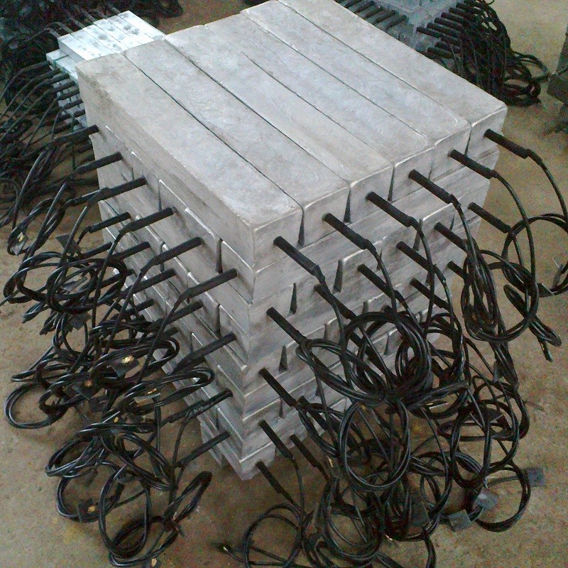 混凝土结构中的预埋钢质构件:如桥梁桩基、混凝土储罐中的加强筋。锌合金的稳定电位能避免因混凝土孔隙液的高碱性导致的阳极钝化,且长效性适合混凝土结构的长期防腐需求(>20年);同时,锌合金的高力学强度(抗拉强度180~250MPa)能抵抗混凝土浇筑时的冲击压力,不易破损。