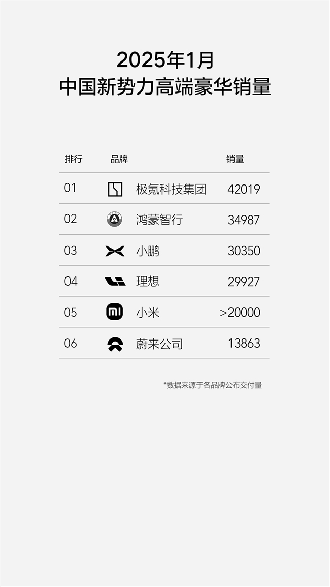 极氪定位为“全球豪华科技品牌”,专注于为用户提供极致的豪华体验和领先的科技配置;领克定位为“全球新能源高端品牌”,以潮流、运动、个性的品牌形象吸引了众多年轻消费者。今年1月,极氪科技集团销量超过4.2万辆,在中国新势力高端豪华汽车市场中位居榜首。2025年,集团计划实现40%的增长率,达成71万辆的销量目标,并在未来两年成为年销百万级的全球领先高端豪华新能源汽车集团。