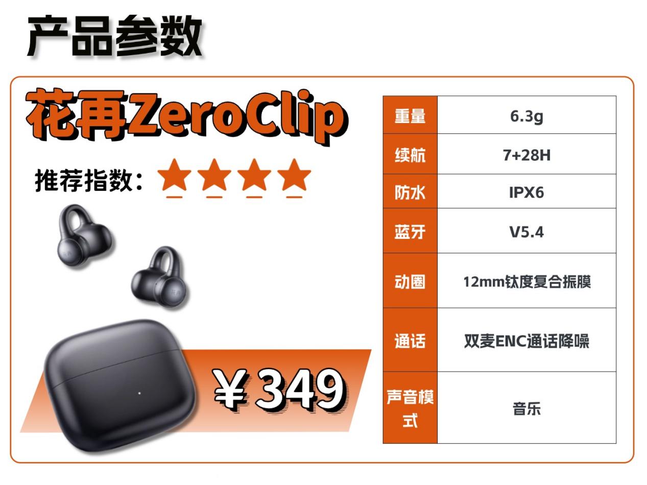 如果偏爱人声听音,且注重机身质感和防水实用性,花再 ZeroClip是不错的选择。359 元的价格拥有 IPX6 高防水等级,人声还原细腻、细节表现出色,机身还具备防指纹的实用设计,日常户外、室内使用都合适,唯一不足是续航和重量表现稍逊。