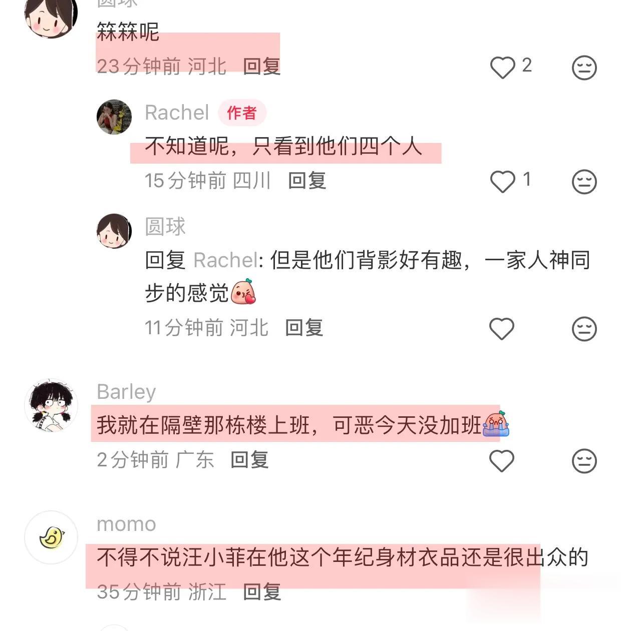 马筱梅一头大波浪,穿着长裙,拿着爱马仕,衣品在线,身材很好,孕晚期了,身材还这么好,很难得,马筱梅妈妈短发,看上去很年轻,小玥儿阔腿裤,白色宽松体恤,标志性的黑长直,偶遇的博主说小玥儿看着很文静,正脸还是很像大S的,前几天有网友偶遇汪小菲一家,拍到了小玥儿的正脸,网友都说他像汪小菲,44岁的汪小菲身材保持很好,帅气有型,网友说这一家四口背影看着神同步,这次没见小箖箖,估计跟男保姆在酒店里呢!