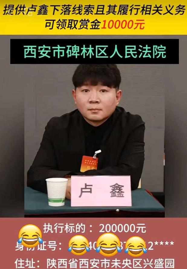 2月11日下午,西安市碑林区法院官方微信公众号,发布了一则重磅执行悬赏公告(2026年第5期),瞬间引爆全网舆论。公告中,被执行人的身份信息被清晰公示——正是知名相声演员、相声新势力掌门人卢鑫,不仅附上了他的正面头像,还公布了其身份证前14位、常住住址等关键信息,执行标的定格在20万元。
