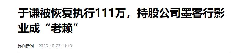 界面新闻《于谦被恢复执行111万,持股公司墨客行影业成“老赖”》