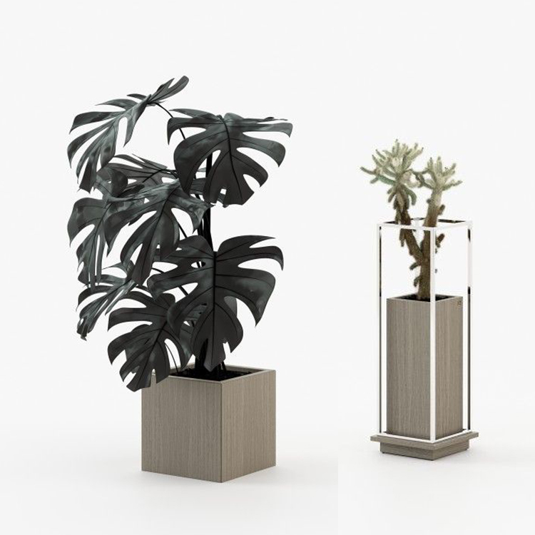 户外艺术不锈钢精心策划花园花盆。享受时尚的用餐或安静地闲逛。
