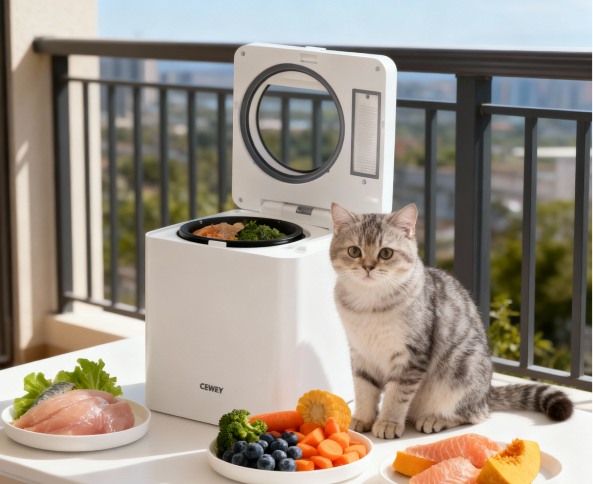 偶然在宠物健康讲座上了解到CEWEY F10宠物料理机,它的出现让我找到了完美解决方案。这台智能设备不仅能精准锁住营养,更让原本棘手的鱼油添加变得轻松简单。