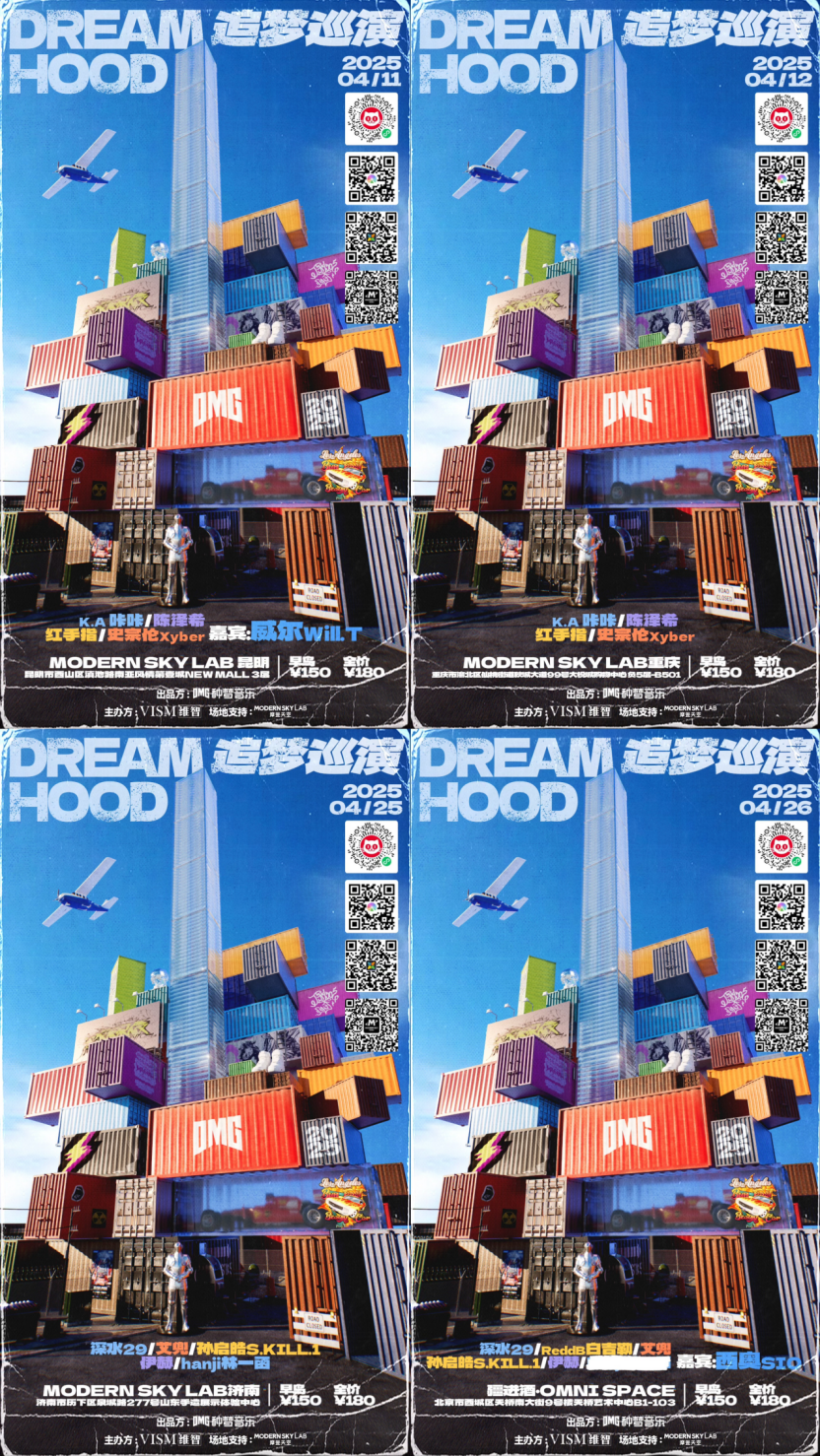 2025年3月31日,由种梦音乐D.M.G出品的《追梦巡演2025》全面启动,正在现场、秀动、大麦、猫眼四大平台正式开票,DREAM HOOD首波巡演城市及演出阵容曝光,4月11日昆明、4月12日重庆、4月25日济南、4月26日北京四站陆续开演,去年在S+级综艺《说唱梦工厂》中脱颖而出的热门选手史宗伦Xyber、红手指、hanji林一函、伊赫、孙启皓S.KILL.1、陈泽希、艾兜、K.A咔咔、ReddB白吉勒、深水29首次集结出发,阵容轮番组合亮相,还有嘉宾OG威尔Will.T、西奥SIO的倾情加盟,起锚扬帆,爆燃启程,一场最新最潮的音乐嘉年华即将掀起今春LIVE狂欢热浪。