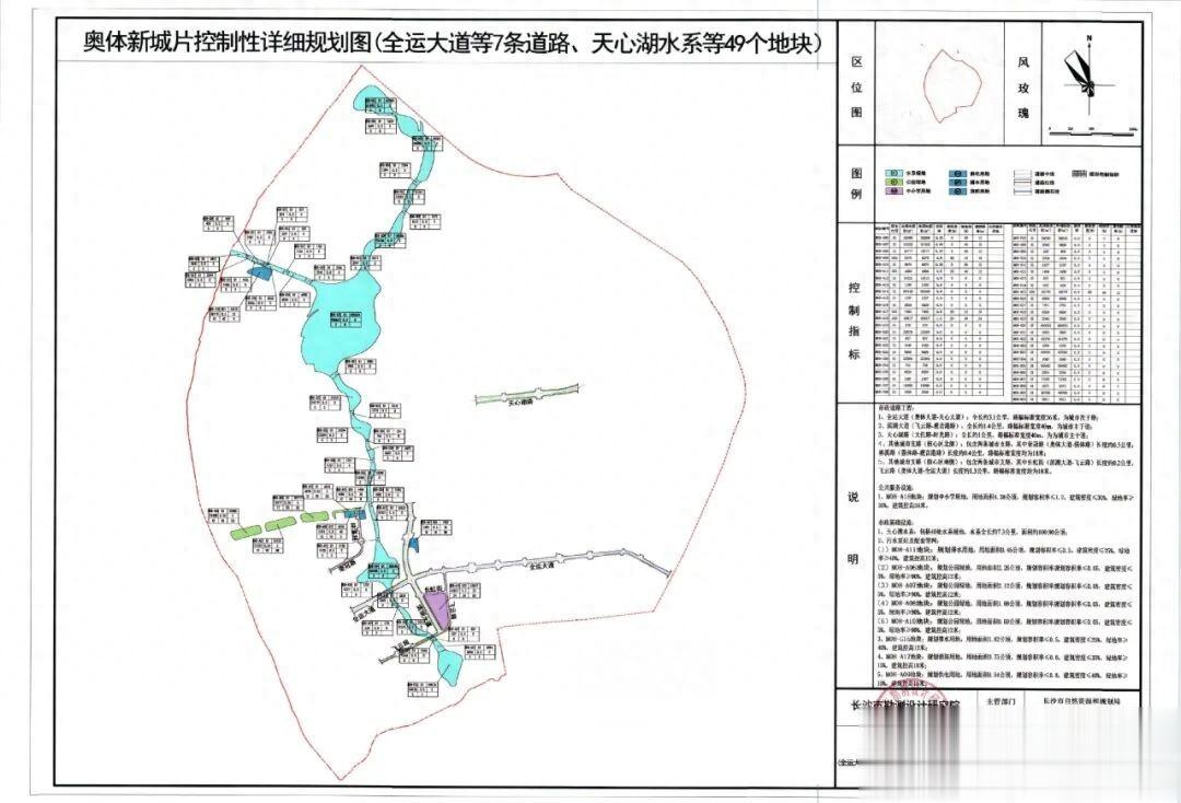 近日,长沙自然资源和规划局发布《奥体新城片控制性详细规划(全运大道等7条道路、天心湖水系等49个地块)》。