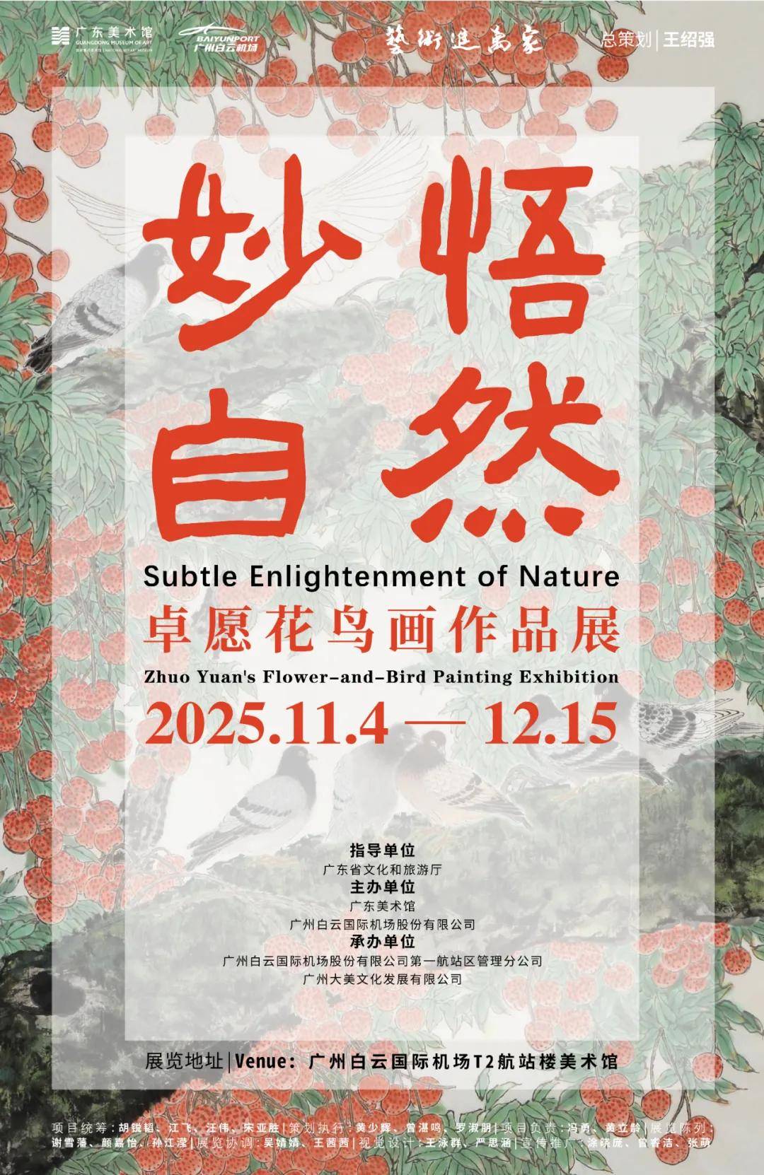 在当下高速运转的都市生活中,人们常困于案牍劳形,疏离了自然,内心渴望一片宁静栖息的绿洲。本次展览匠心独具地分为三个板块:“四时芳华”“田园逸趣”“万物有灵”。从时序更迭到田园情怀,再到万物共生,系统而多维地构建起一个充满生机与哲思的艺术世界。作为广东美术馆“艺术进万家”项目的创新实践,希望通过卓愿的艺术,能够在机场这一人流往来如潮的环境中,引导观者暂缓步履,于审美体验中重新建立与自然的连接,感受天地之大美,获得精神的舒缓与升华,这正是艺术在当代语境下的重要价值与意义。