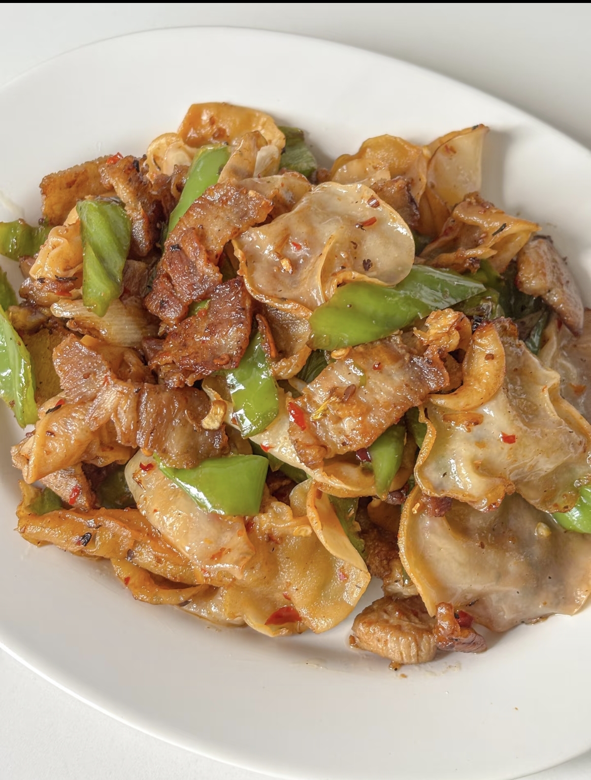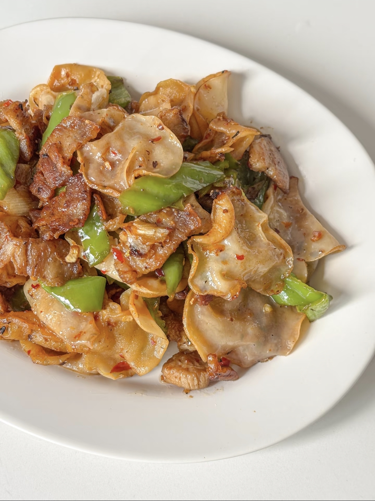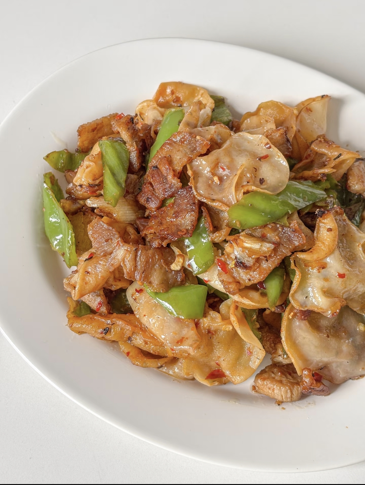准备工作就绪,我们就可以开始烹饪了。首先,热锅凉油,将切好的五花肉片放入锅中,用中小火慢慢煸炒,直到肉片变色,边缘微微焦黄,煸出多余的油脂,这样吃起来才不会腻。接着,加入切好的蒜末,快速翻炒出香味。然后,把切好的青椒丝倒入锅中,大火翻炒,直到青椒表皮微微起皱,散发出特有的香气。