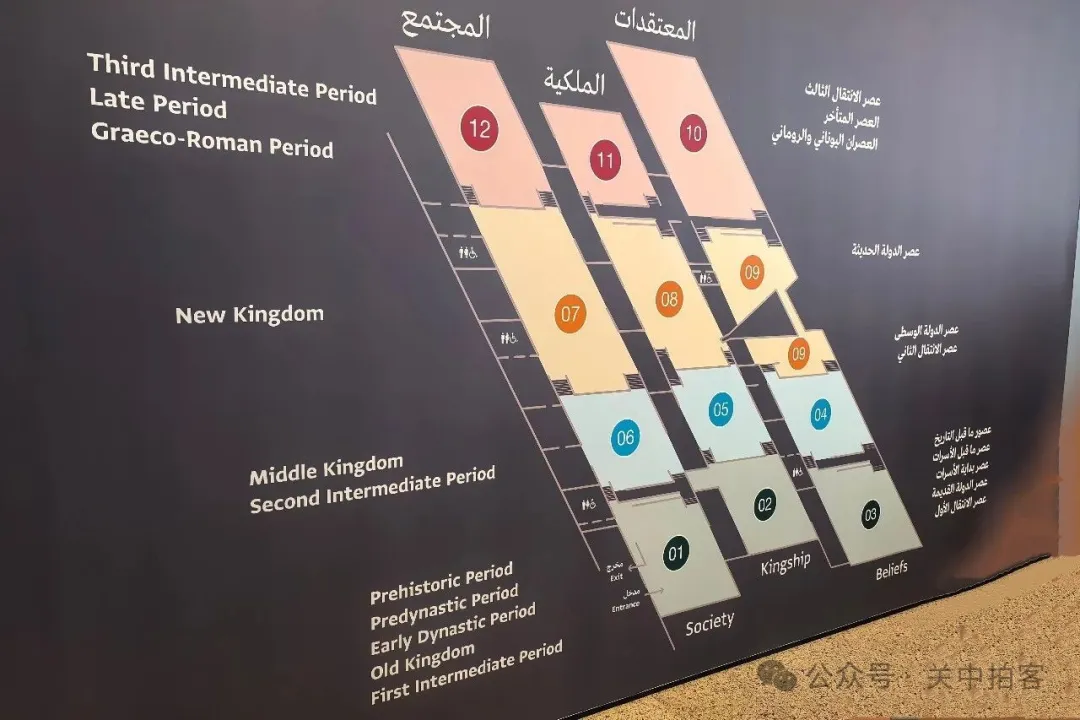 在大埃及博物馆内,共有十二个主展厅,讲述古埃及辉煌灿烂的历史,从距今70万年开始的史前时期到公元394年结束的希腊罗马时期。通过数万件珍贵文物,构建文明发展的脉络——