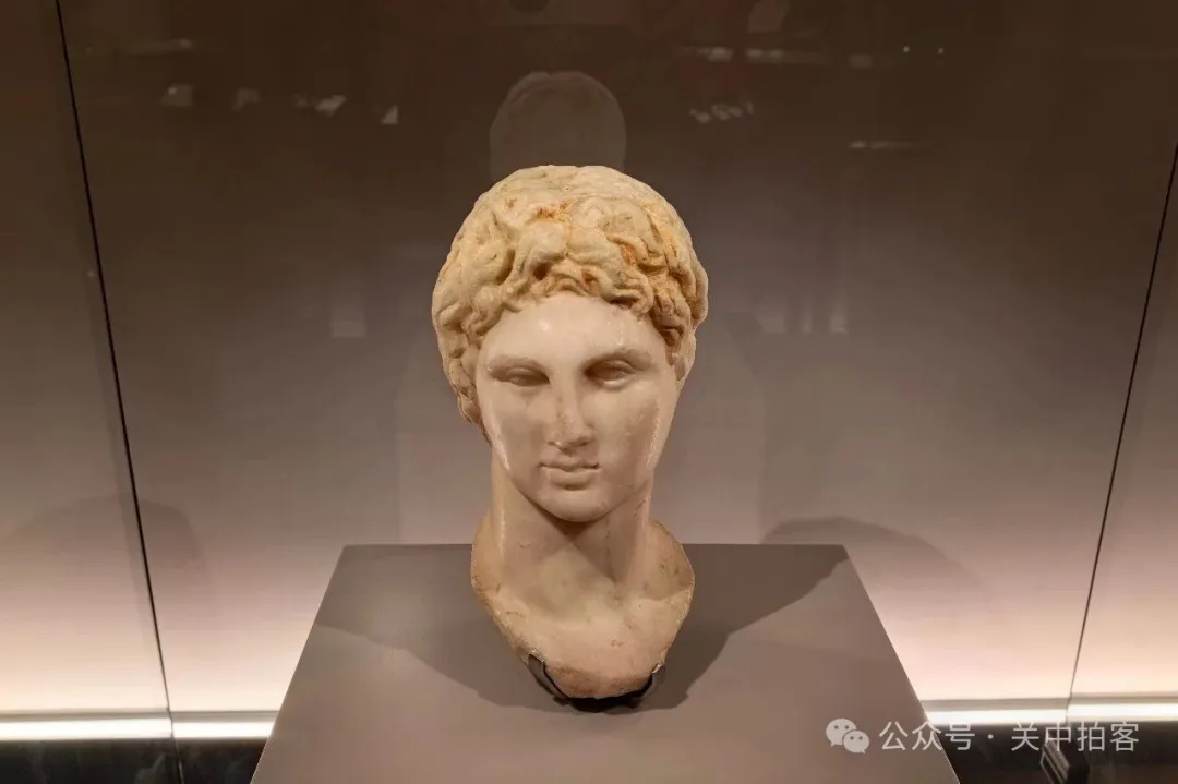 这里陈列着一件发现于尼罗河三角洲思穆伊斯古城的亚历山大头像,淡褐色的卷发,面目清秀俊朗。亚历山大在埃及期间,受到人们的广泛拥戴,前往西瓦绿洲祭拜阿蒙神,被祭司宣布为“阿蒙之子”。