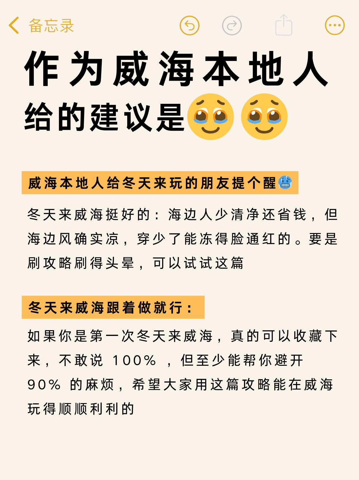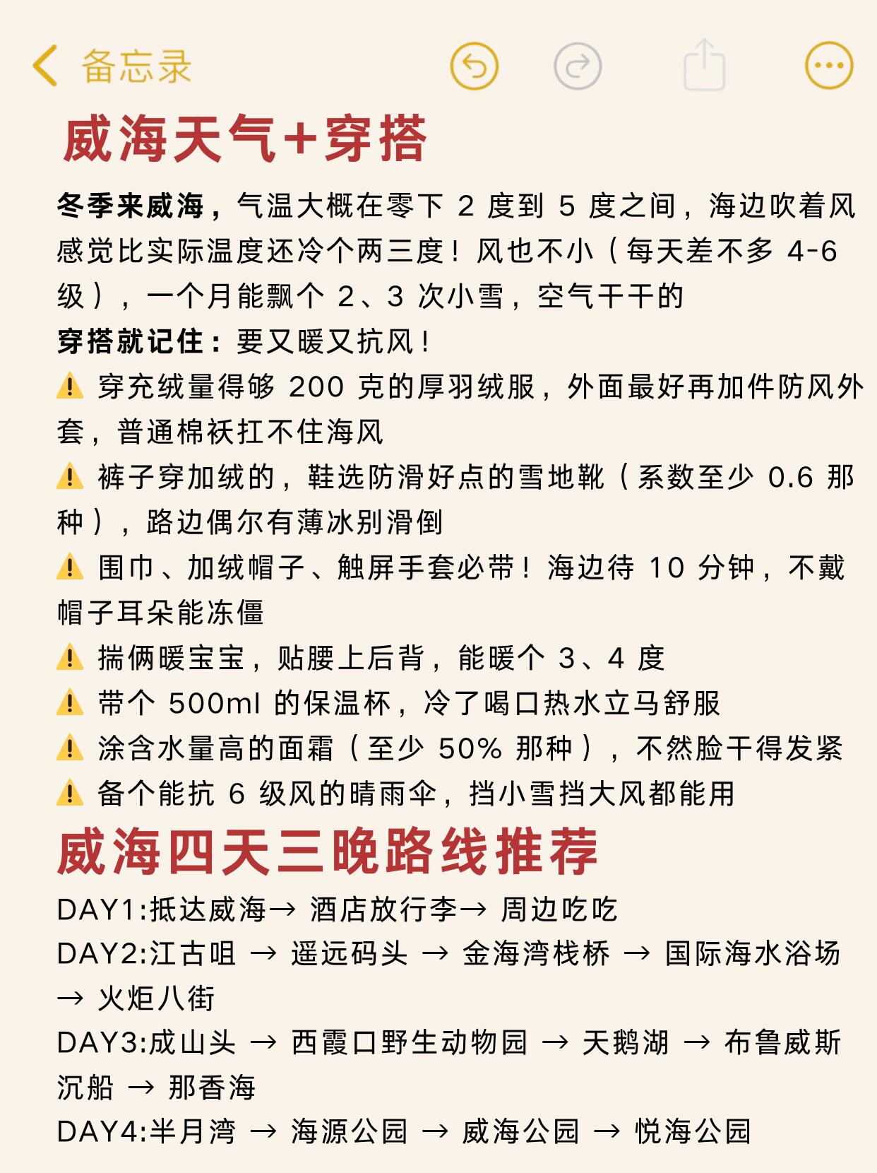 威海冬天人少省钱,就是海风巨烈🌬️,穿少了分分钟脸冻得🥶,按这份建议玩,行程超顺畅