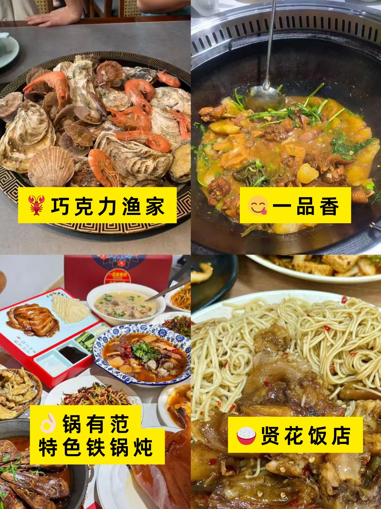 吃的闭眼冲😋:1️⃣去巧克力渔家吃蒸汽海鲜,2️⃣贤花饭店吃猪蹄拌面,3️⃣锅有范铁锅炖也不错。这三家味道都超地道!