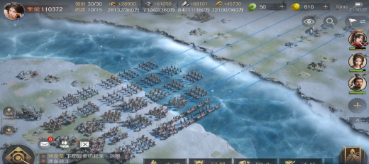 《三国:谋定天下》在社交与策略融合方面堪称一绝。它首创的“镇军/青囊/神行”等六大职业体系,强制联盟内进行分工协作。比如在一场战斗中,镇军负责防御,青囊负责治疗,神行负责快速支援,每个职业都有其独特的作用,玩家必须与盟友密切配合。