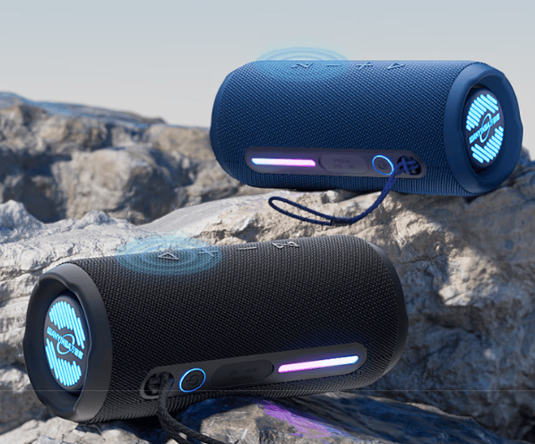 推荐原因:这款音响采用圆柱形设计,重量约580克,手感良好,便于握持,便携性也不错。外观上融入了RGB灯光元素,灯光会根据音频节奏变化,特别适合夜间使用,增添了一些氛围感,适合户外聚会或露营等场景。