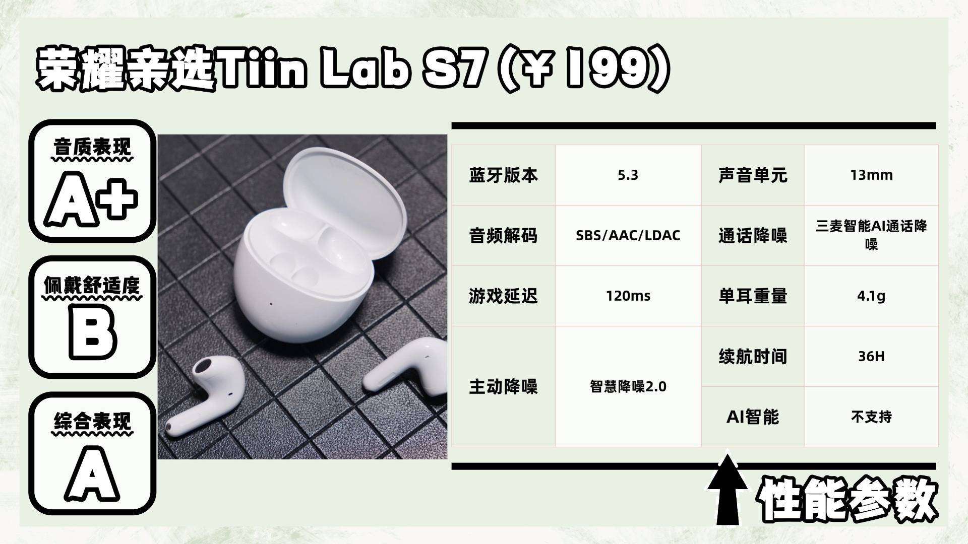 推荐三、荣耀亲选TiinLab S7蓝牙耳机