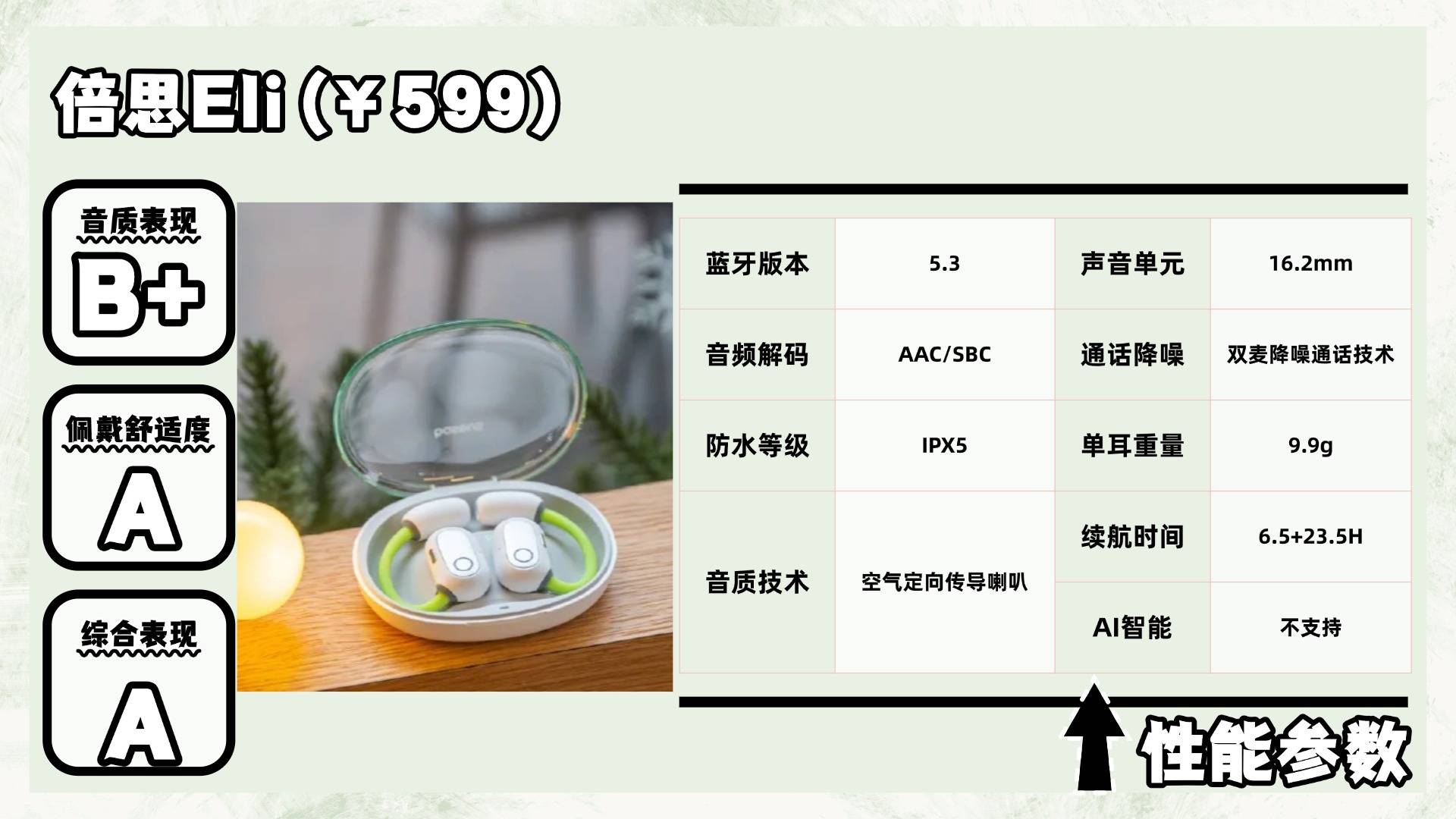 倍思Eli开放式耳机采用轻量化耳挂结构,从设计上缓解了传统入耳式耳机可能引起的耳道闷塞感,佩戴更为舒适通透。耳挂采用钛合金记忆钢丝,既提供了稳固支撑,又具备柔韧弹性,能够适应多样的耳型轮廓,兼顾佩戴牢固与不夹耳的效果。
