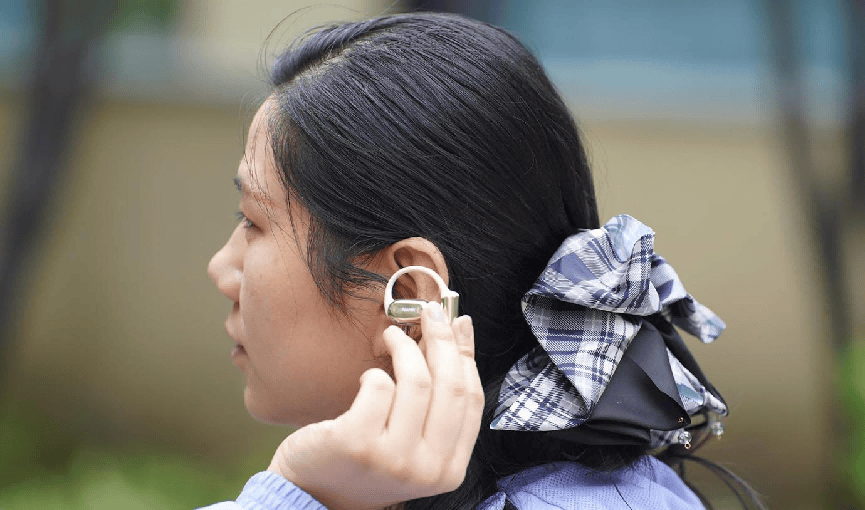 骨聆SS900选用航天级钛合金骨架,兼具军工标准抗弯强度与轻量化特性,单耳重量仅为7.9克,可经受多达2000次弯折不损伤。其内部采用3毫米超薄骨传导振子,声音经由颅骨直接传导,减少对耳道造成的压迫,尤其适合中耳炎用户与需要长时间佩戴的人群。
