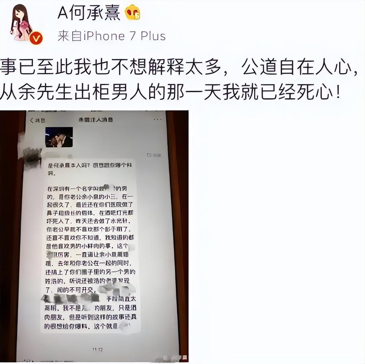 可谁能想到,这看似牢不可破的幸福,不过是一场精心编织的骗局。2017年,就在何承熹产后不久,她意外发现了余小泉的秘密——他竟然是同性恋,所谓的婚姻,不过是一场彻头彻尾的骗婚。何承熹在整理余小泉的手机时,发现了他与其他男性的亲密照片,那些照片暧昧十足,拍摄时间甚至贯穿了两人的整个恋爱和婚姻期间。