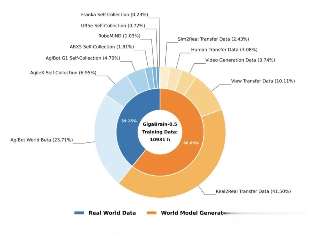 上万小时的训练数据 GigaBrain-0.5M*的基座模型GigaBrain-0.5基于总计10,931小时的多样化机器人操作数据进行预训练,其中: