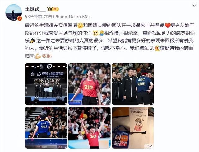 《输给樊振东后,王楚钦发文:请期待我满血归来》中国青年网2024-12-17发布